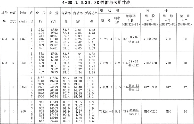 機(jī)號為No2.8 ~5的4-68型風(fēng)機(jī)主要由葉輪,機(jī)殼、進(jìn)風(fēng)口等部分配直聯(lián)電動機(jī)組成,No6.3~20除上述部分外還有傳動部分。