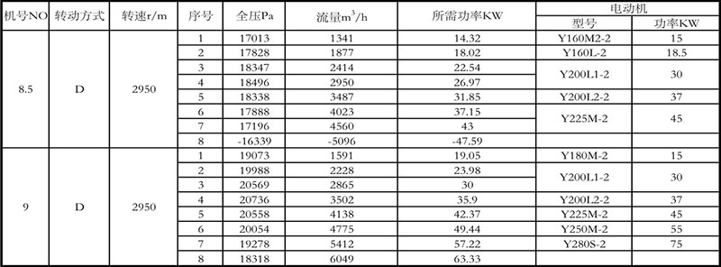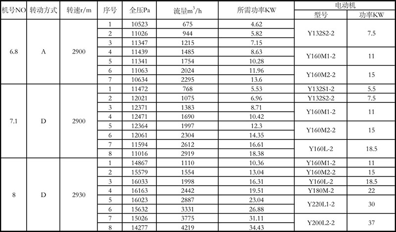 8-09高壓離心通風(fēng)機性能參數(shù)表