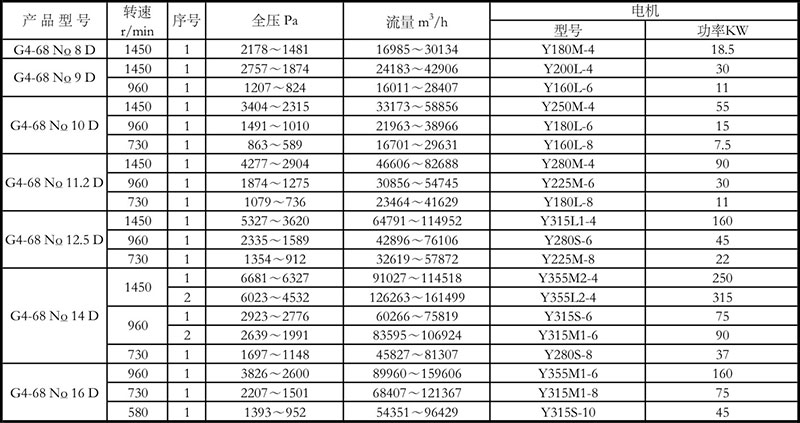 (1)通風(fēng)機(jī)與引風(fēng)機(jī)均制成單吸入,各有No.8-16共7個(gè)機(jī)號(hào)。