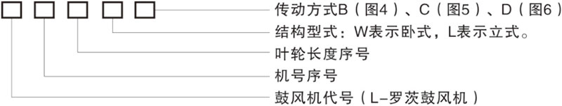 產(chǎn)品型號(hào)說明立式——鼓風(fēng)機(jī)的兩個(gè)轉(zhuǎn)子中心線在垂直面內(nèi),氣流為水平流向(如圖3所示)
