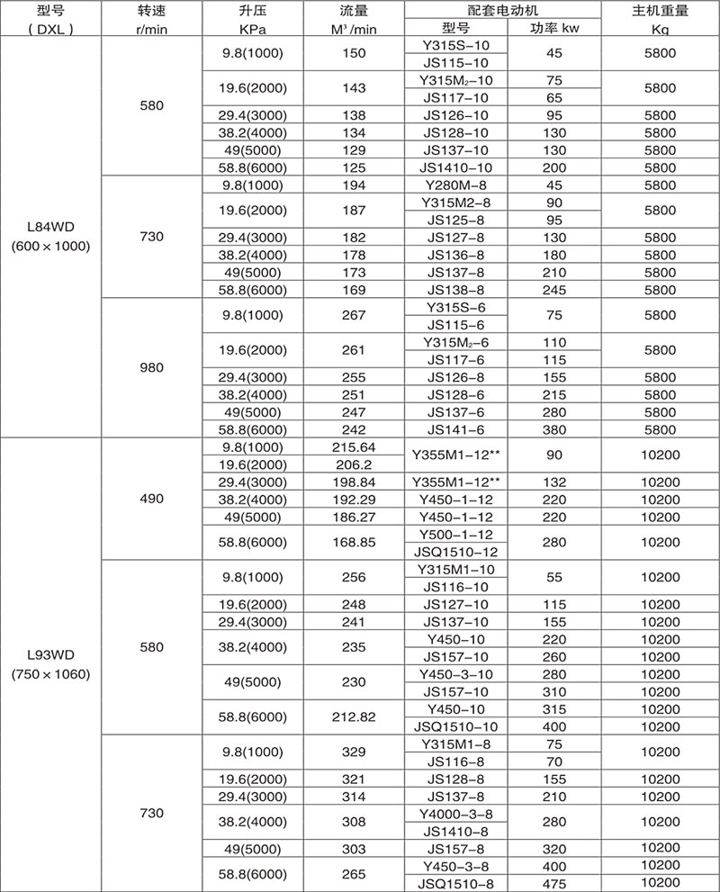 L型羅茨鼓風(fēng)機(jī)系列的性能覆蓋面廣。流量從0.25-1000m³min,升壓高可達(dá)98KPa。